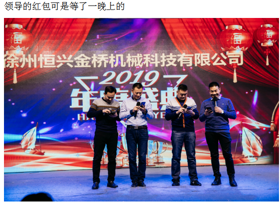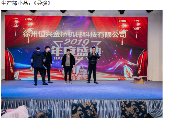 本次年會上,恒興金橋員工自編自演了很多豐富多彩的文藝節目,激動人心的抽環節使整個晚會高迭起。開場舞《隔壁的泰山》給大家帶來了一場精彩的開頭。生產部員工帶來的個人街舞,也是掌聲不斷。恒興公司臥虎藏龍,喊麥的,說相聲的,演小品的,那個個都是好演員。晚會還表揚表彰了一批2018年員工及優**班組,公司領導頒發獎杯及獎金。